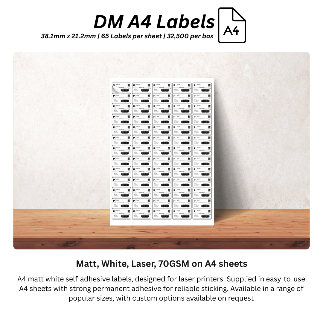 DM A4 Labels 38.1mm x 21.2mm – Matt, White, Laser, 70GSM